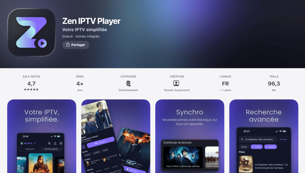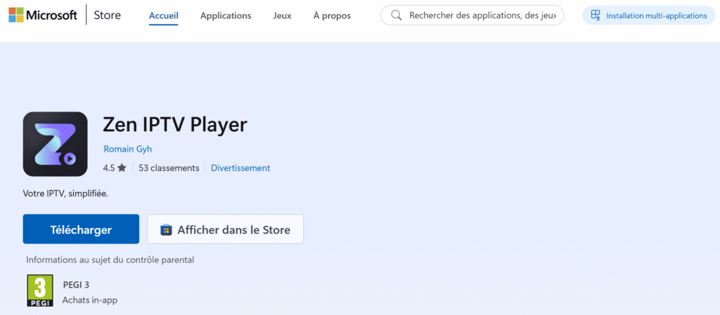 1- Téléchargez l'application depuis l'AppStore pour iOS, ou Microsoft Store pout Windows. Tapez simplement Zen IPTV Player dans la barre de recherche, l'application devrait apparaître.